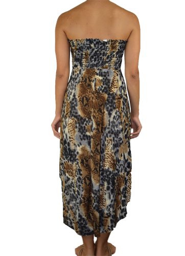 Ladies Fashion Leopeard Print High Low Strapless Dress - Made in U.S.A. - S.M.L. - 95% Polyester - 5% Spandex
