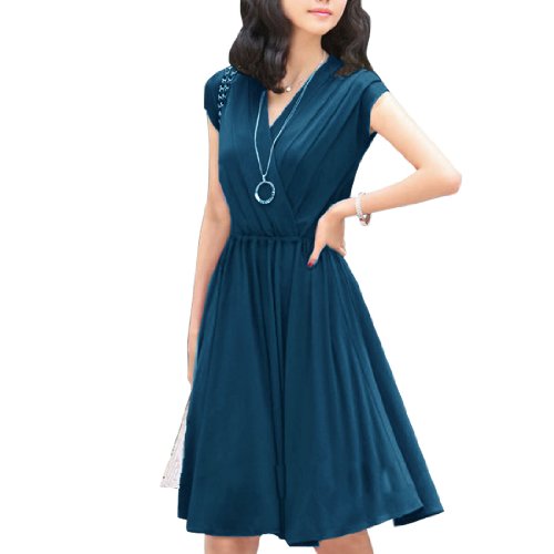 - Short Sleeve, Crossover Deep V Neck, Pure Color, Elastic Waist, Stretchy, Ruffle Upper.