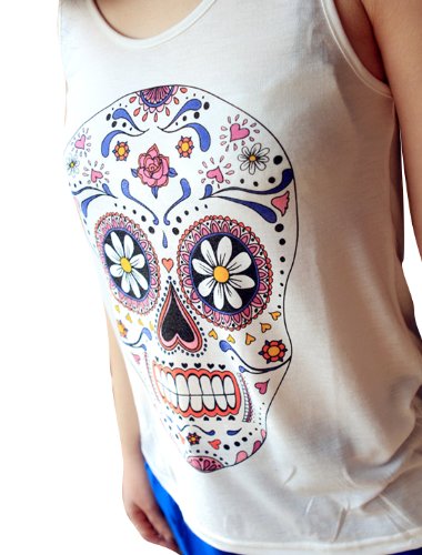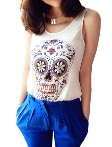 Allegra K Women's Scoop Neck Sleeveless Flower Skull Tank Top