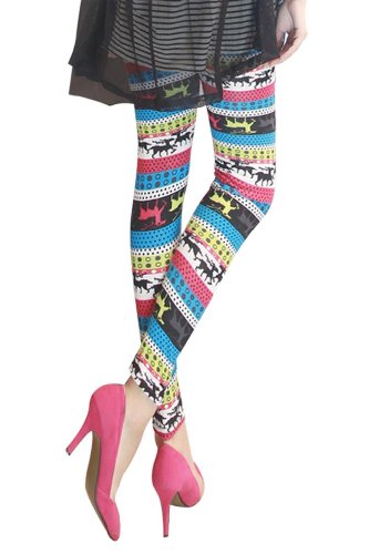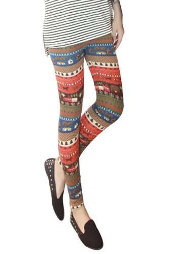Amour-Women Reindeer Deer Snow Snowflake Footless Legging Tight Pant Black White