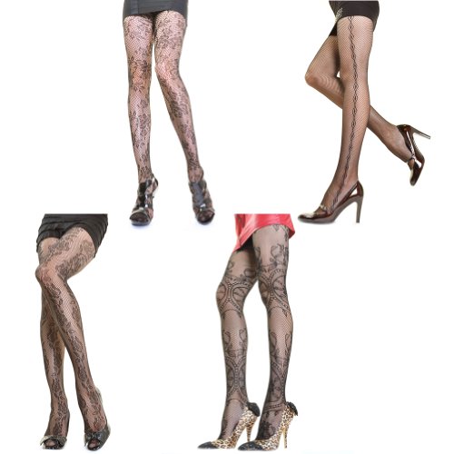 Angelina's patterned fishnet pantyhose has been loved by many. Becoming available by popular demand, we are offering assorted-design pack so you have more styles for less.