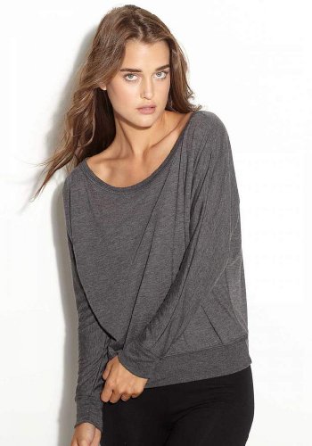 viscose polyester; flowy jersey; dolman sleeves; ribbed cuffs; waistband; seam up center back;