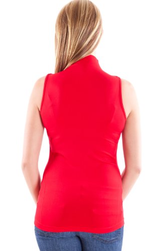 Ladies Seamless Tank Top. This tank features seamless lining, ribbed side panels, and a small turtleneck, Approximately 26" in length, 92% Nylon, 8% Spandex.