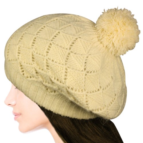- Acrylic and Rabbit Hair Fluffy Twisted Knit Classic Beret Style Beanie Cap Hat colors: Red, Cream, Black, Purple | Acrylic and Rabbit Hair Fluffy Crochet Shining Diamond Pattern Double Layer Beanie Cap with Pompon colors: Black, Red, Cream