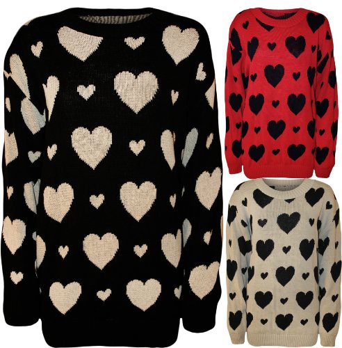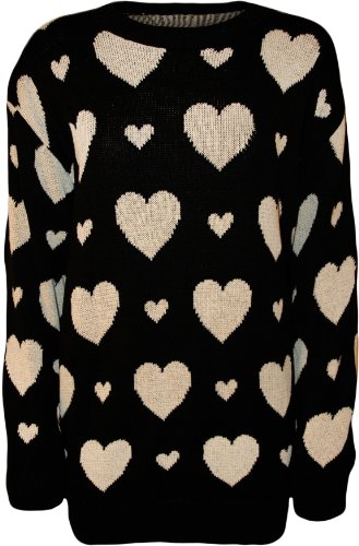 Featuring a fun all over heart pattern, this long sleeve knitted jumper will keep you cosy in style on cold days, and the soft fabric is comfortable to wear too. Pair with jeans for a stylish day time outfit.