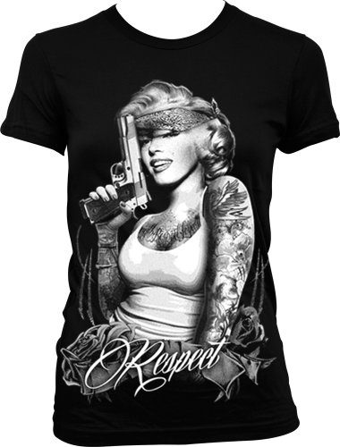 Respect Marilyn Monroe With Tattoos and Gun Ladies Junior Fit T-shirt