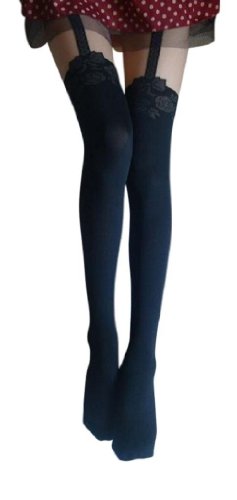 - Women Mock Suspender Garter Stocking Tights SEXY ROSE and RIBBON Print
