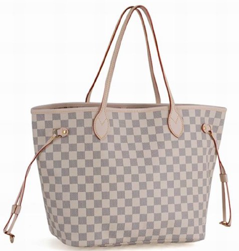 Designer Women White Neverfull Inspired Pu Leather Shoulder Lady Tote Bags