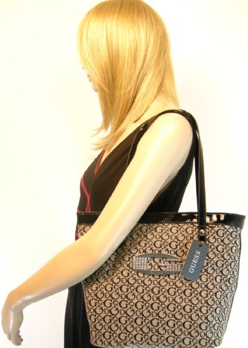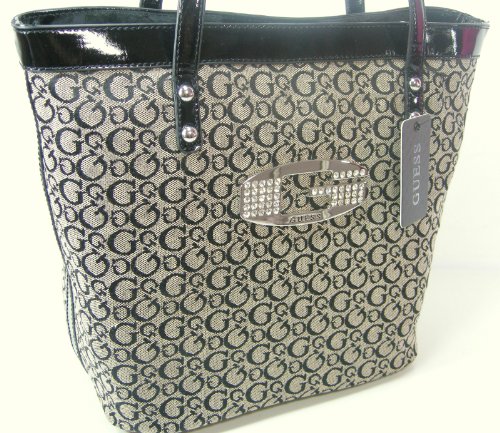Guess G logo charm on the exterior of the bag in silver with rhinestones.