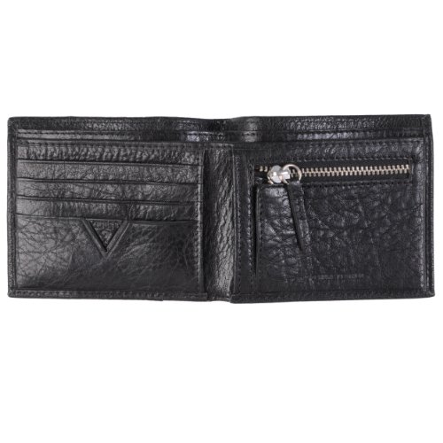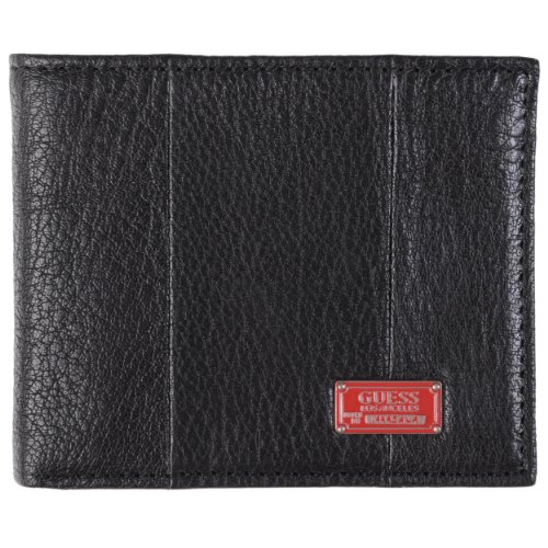 This slim bi-fold wallet by Guess offers organization and sophistication in one stylish accessory. Constructed of genuine leather, this bi-fold wallet features multiple pockets for organizing and carrying your essentials. Topstitching and a logo-stamped metal accent complete this attractive bi-fold.