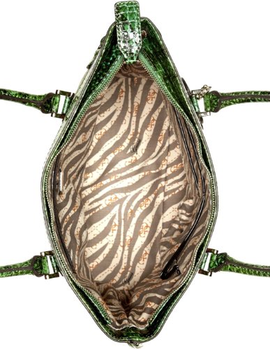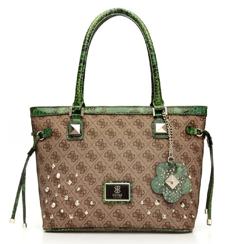 Elevate your look with this statement tote. Tassels, studs and a matching keychain add trend-topping attitude to your casual-day wardrobe. Faux-leather tote with snake-embossed handles and trim. Pale gold-tone hardware and stud details. Allover 4-G logo print. Removable keychain included. Logo plaque on front. Top zipper closure. Interior features a zipper pocket, cell phone pocket and two multipurpose pockets Dual top handles with 8 ½" drop.