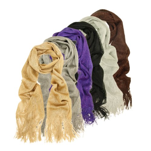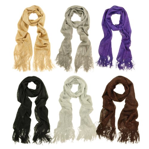 This unique scarf is a great addition to your collection of fashion accessories. Soft and comfortable, no scratchy feel. Trendy and versatile, thin and light weight, with cool glitters. Goes nicely with different outfits to make your own fashion statement. Perfect for spring to fall seasons. This makes an excellent gift for women on any occasion. The size is 67" x 21" with 6" fringe on each end.