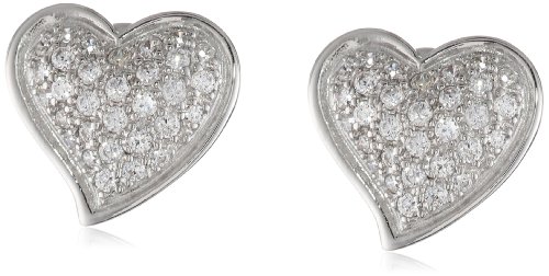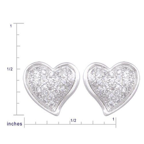 - Pave-set cubic zirconia stones lend a touch of sparkle to these charming heart-shape earrings, which feature a slight puff shape.