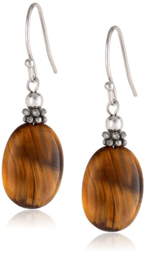 The natural beauty of gemstones fills the ears with these sterling silver drops. Hanging from each fishhook backing is a polished stone that showcases its rich color. Small sterling silver bead adornments link between the stone and the backings to add extra elegance to this pair.
